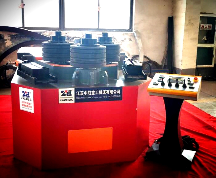 型材彎曲機分臥式和立式兩種,根據不同的軸布置也可分為上調式和下調式,它是彎曲鋁合金異型材、扁鋼、方鋼、圓鋼、角鋼、I型鋼、H型鋼、方管、矩形管、圓管等型材的先進機器。可根據用戶的要求訂制不同的模具。4輥都是主動輥、有4個獨立的液壓馬達驅動。卷制速度快、精度高。