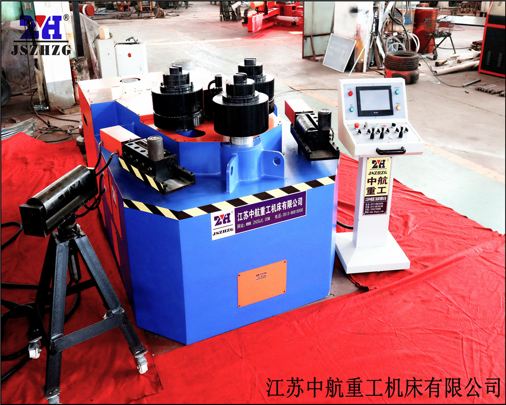 型材彎曲機分臥式和立式兩種,根據不同的軸布置也可分為上調式和下調式,它是彎曲鋁合金異型材、扁鋼、方鋼、圓鋼、角鋼、I型鋼、H型鋼、方管、矩形管、圓管等型材的先進機器。可根據用戶的要求訂制不同的模具。4輥都是主動輥、有4個獨立的液壓馬達驅動。卷制速度快、精度高。